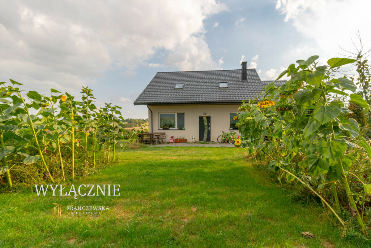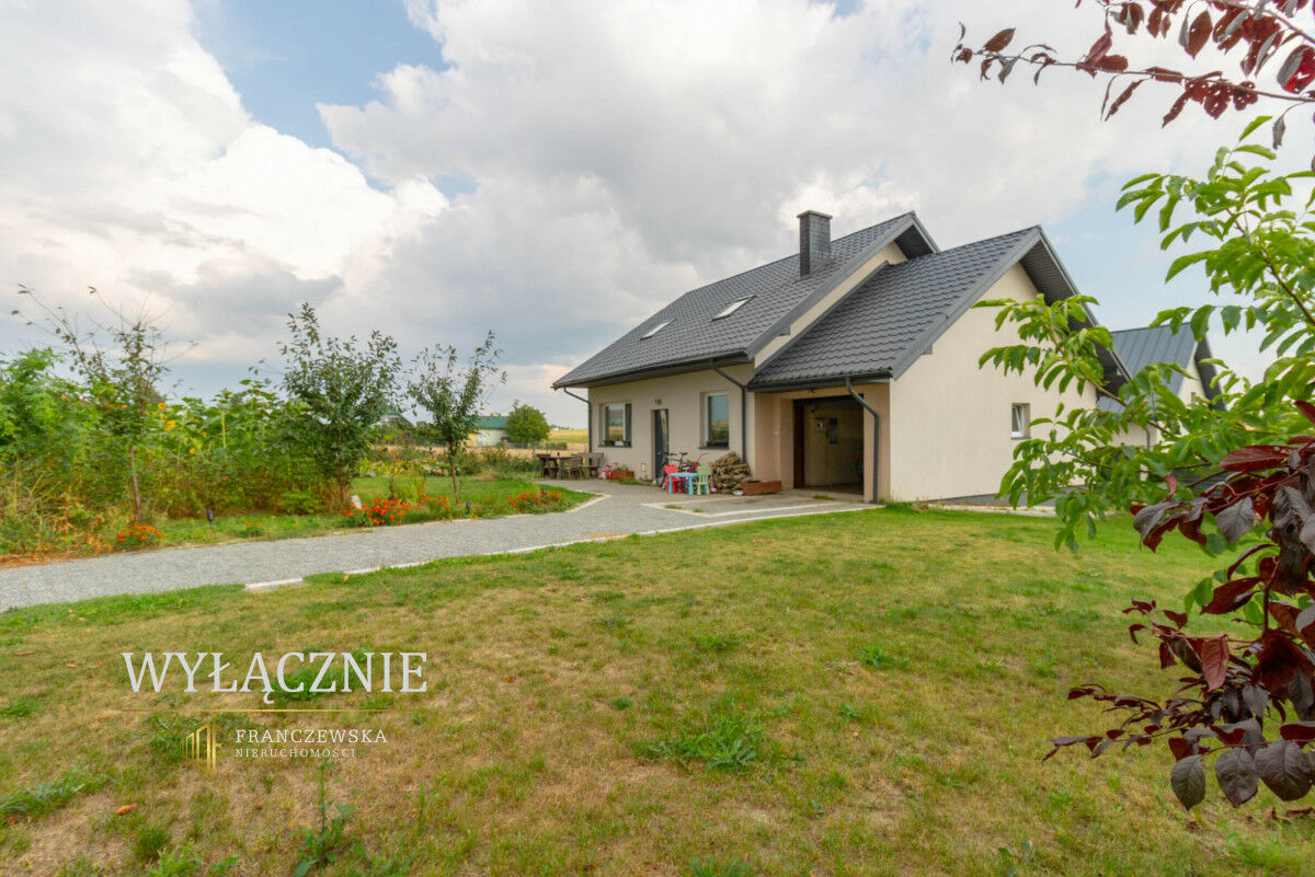 Dom jednorodzinny wolnostojący z garażem w bryle budynku i poddaszem, wybudowany i wykończony w 2019r. na działce o powierzchni 1227m2.