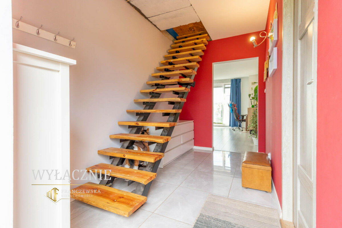 Parter wykończony, na podłogach gres i panele, schody wewnętrzne drewniane, stała zabudowa i sprzęt agd w cenie nieruchomości.